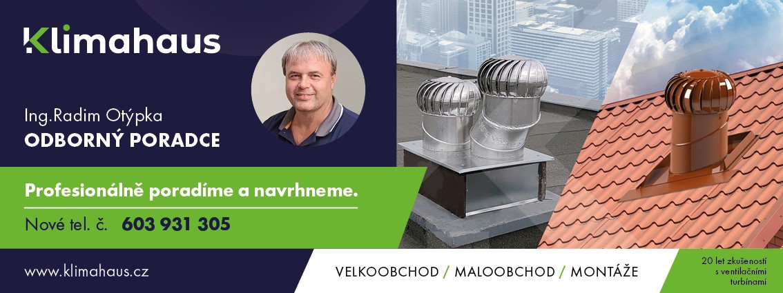 Firma KLIMAHAUS provádí odborný návrh, prodej, montáž, servis ventilačních turbín LOMANCO, VIV. Dále provádíme návrh a montáž tubusových světlovodů (SUNIZER, Velux). Klimatizace SPLIT, jednodílné klimatizace UNICO od Olimpia Spledid, mobilní klimatizace, ...