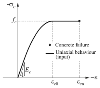 V metodě 3D CSFM je pro popis chování betonu uvažován úhel vnitřního tření φ = 0°. Tento předpoklad leží na bezpečné straně a představuje výrazné zjednodušení výpočtu při zachování dostatečně přesného modelu. Praktickým důsledkem zavedení nulového úhlu vnitřního tření je, že maximální možný rozdíl mezi σc3 a σc1 zůstává konstantní pro libovolnou hodnotu σc3 (viz Obr. 6) a hodnota σc,eq může být tedy přímo porovnávána s jednoosou únosností betonu v tlaku definovanou normami, nezávisle na velikosti σc3.