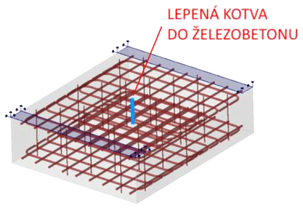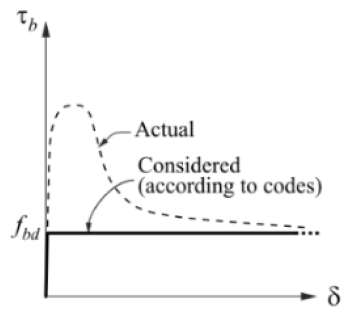 Soudržnost mezi výztuží a betonem je do modelu zavedena uvažováním zjednodušeného tuho-plastického vztahu dle Obr. 4f, přičemž fbd je návrhová hodnota mezního napětí v soudržnosti specifikovaná normou pro dané podmínky soudržnosti. Zohledněny jsou i případné koncové úpravy výztuže (háky, apod.). Kotvy jsou modelovány obdobně jako betonářská výztuž. Přenos vodorovných sil z kotveného prvku do betonu je možné realizovat přímo kotvami, kontaktní plochou nebo smykovou zarážkou.