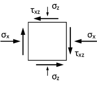 Princip CSFM lze vysvětlit na napjatosti základního rovinného elementu železobetonové konstrukce. Na obr. 2a je napjatost elementu, jak ji známe ze všech učebnic pružnosti a pevnosti, získaná například lineární, pružnou analýzou pomocí metody konečných prvků (MKP). Na element působí horizontální příčný tlak σx , vertikální příčný tlak σz a smykové napětí τxz . Z těchto napětí lze stanovit tzv. hlavní napětí a jejich sklon θ (Obr. 2b). Element je pak namáhán hlavním tahovým napětím σ1 a hlavním tlakovým napětím σ2, smykové napětí je nulové.