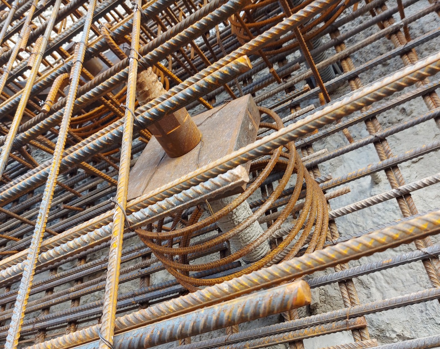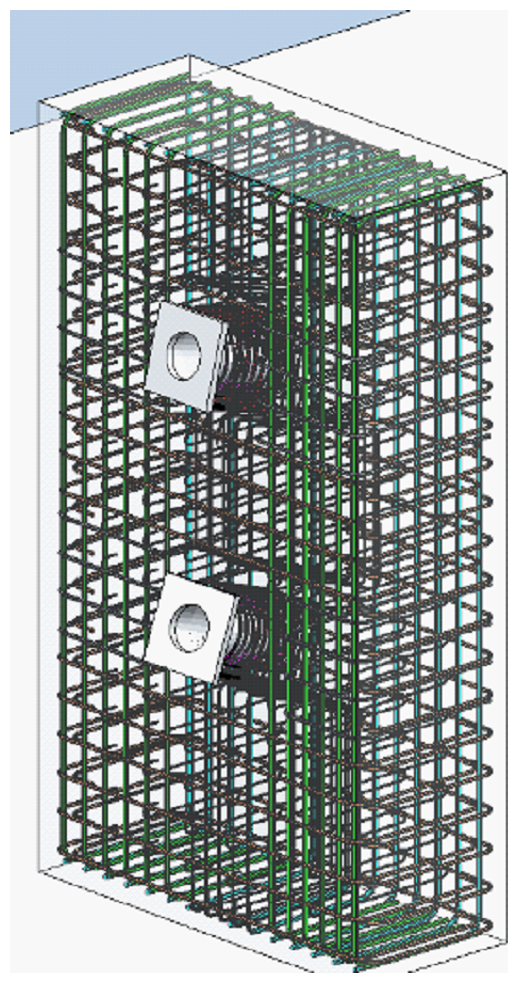 Obr. 8 – Vystuženie steny WR4 – bolo nutné pridať šmykovú výstuž okolo kotevných platní tyčí