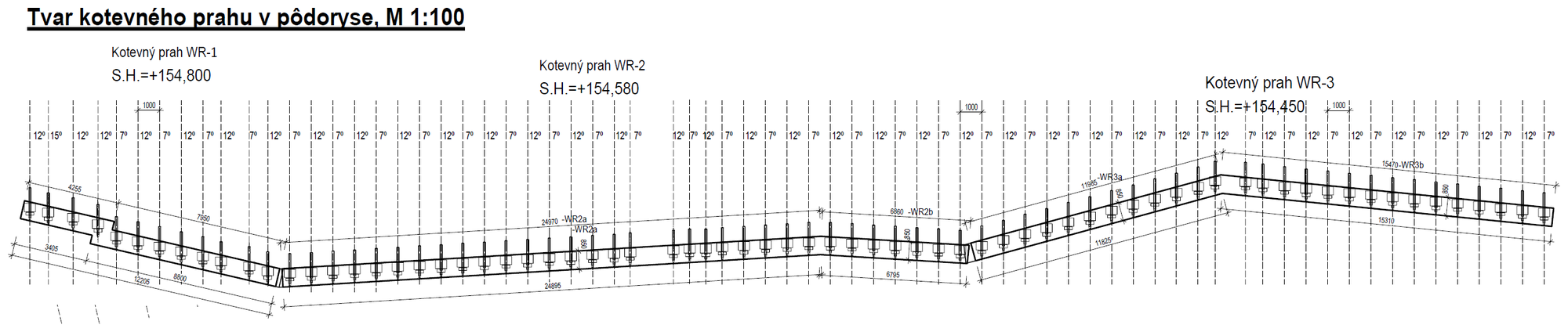 Obr. 9a – Tvar kotevných nosníkov WR1 – WR3 v pôdoryse