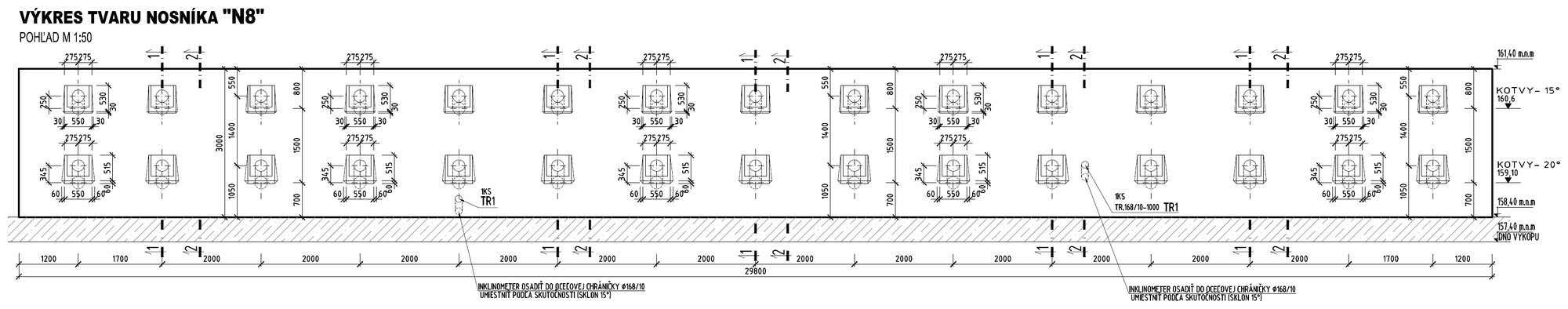 3.3 Železobetónové nosníky zabezpečujúce tyče WR 75 (nepredpínané – pasívne prvky)