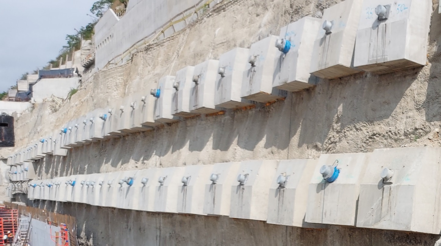 Okrem pasívnych prvkov tvoria podstatnú časť stabilizácie trvalé aktívne kotevné prvky. Pre každý rez paženia boli navrhnuté trvalé lanové kotvy, s počtom lán v rozmedzí od 5-lanových až po 19-lanové, rôznych dĺžok, v závislosti od statického výpočtu daného rezu. V jednotlivých kotevných úrovniach boli následne navrhnuté žb. nosníky alebo hlavice a trvalé lanové kotvy predopnuté na požadované sily. Trvalé lanové kotvy sú navrhnuté s dopínateľnými kotevnými hlavami, čo umožňuje v prípade potreby, na základe vyhodnotení monitoringu, ich dopnúť, prípadne uvoľniť. Preto pre každý typ kotvy boli stanovené kotevné a skúšobné sily, na ktoré boli navrhnuté jednotlivé železobetónové konštrukcie (nosníky a hlavice).