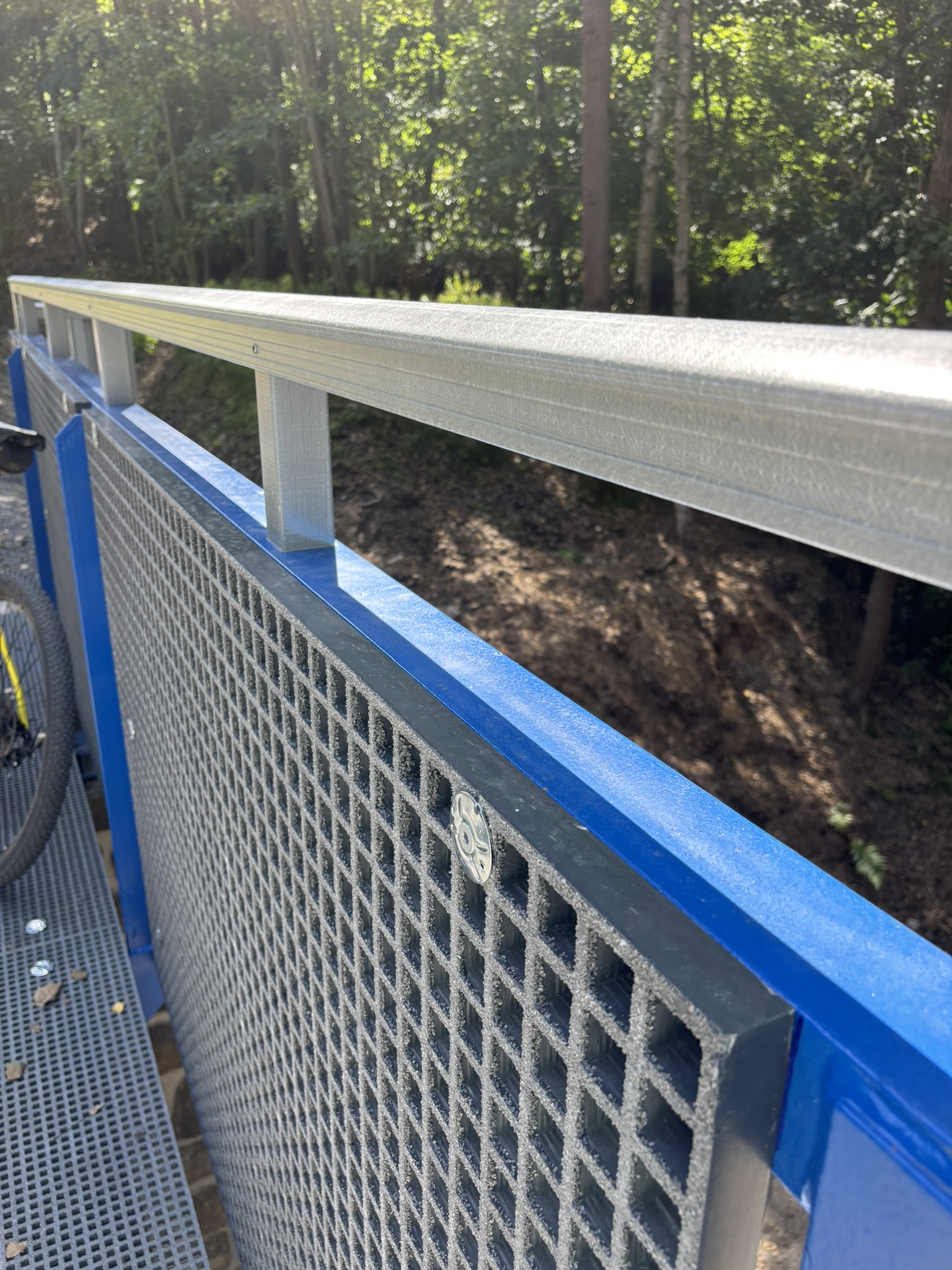 Na nově vybudované trase jsou dva tunely, tři mostní objekty a soubor opěrných a zárubních zdí. Tyto konstrukce byly osazeny kompozitním zábradlímkompozitními protiskluzovými mřížkovými rošty MEA.