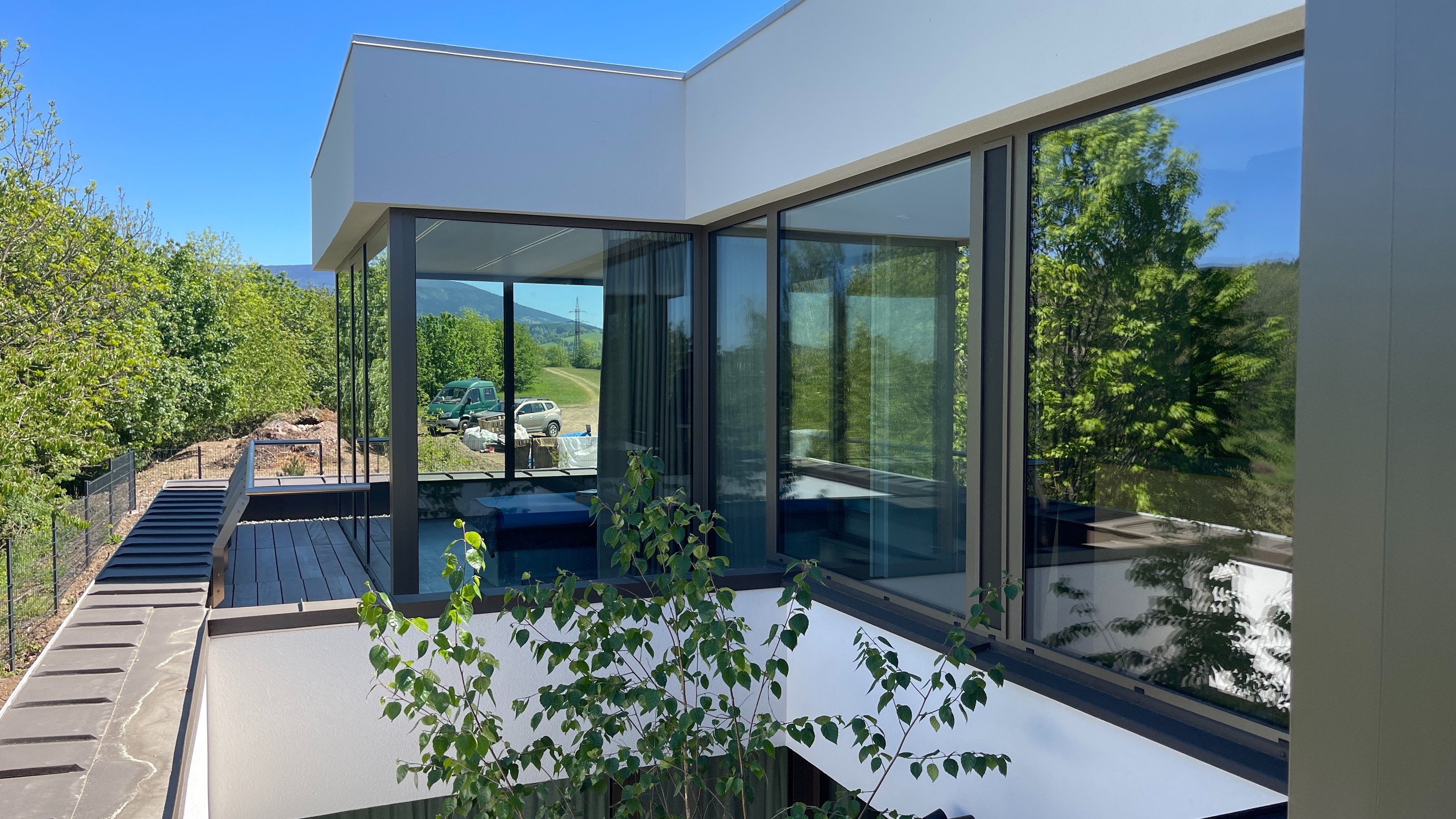 Současná architektura staví na velkých prosklených plochách, čistých liniích a na snaze eliminovat vše, co by narušovalo harmonii interiéru i fasády. Hliníková okna WELL OKNA tyto požadavky splňují díky kvalitním profilům Schüco, vysoké tuhosti a širokým možnostem designového provedení. Skryté větrací křídlo tuto koncepci ještě posiluje – umožňuje větrat tak často, jak je potřeba, aniž by se otevíralo velké okno a rušila panoramata.