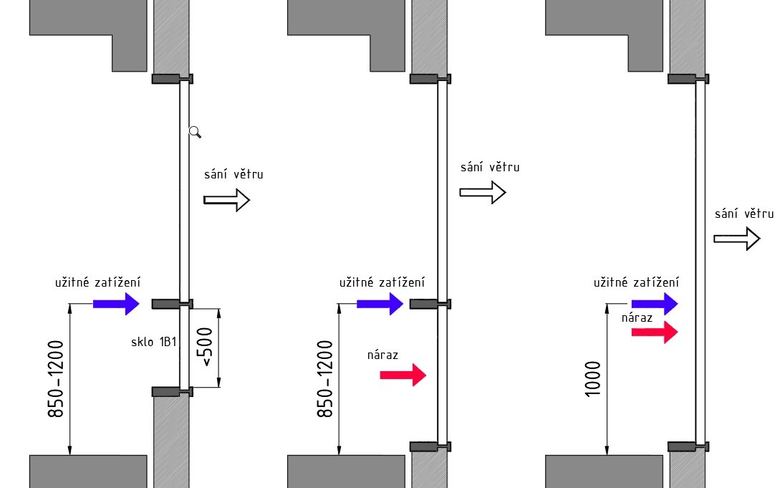 Zatížení působící na skleněnou výplň