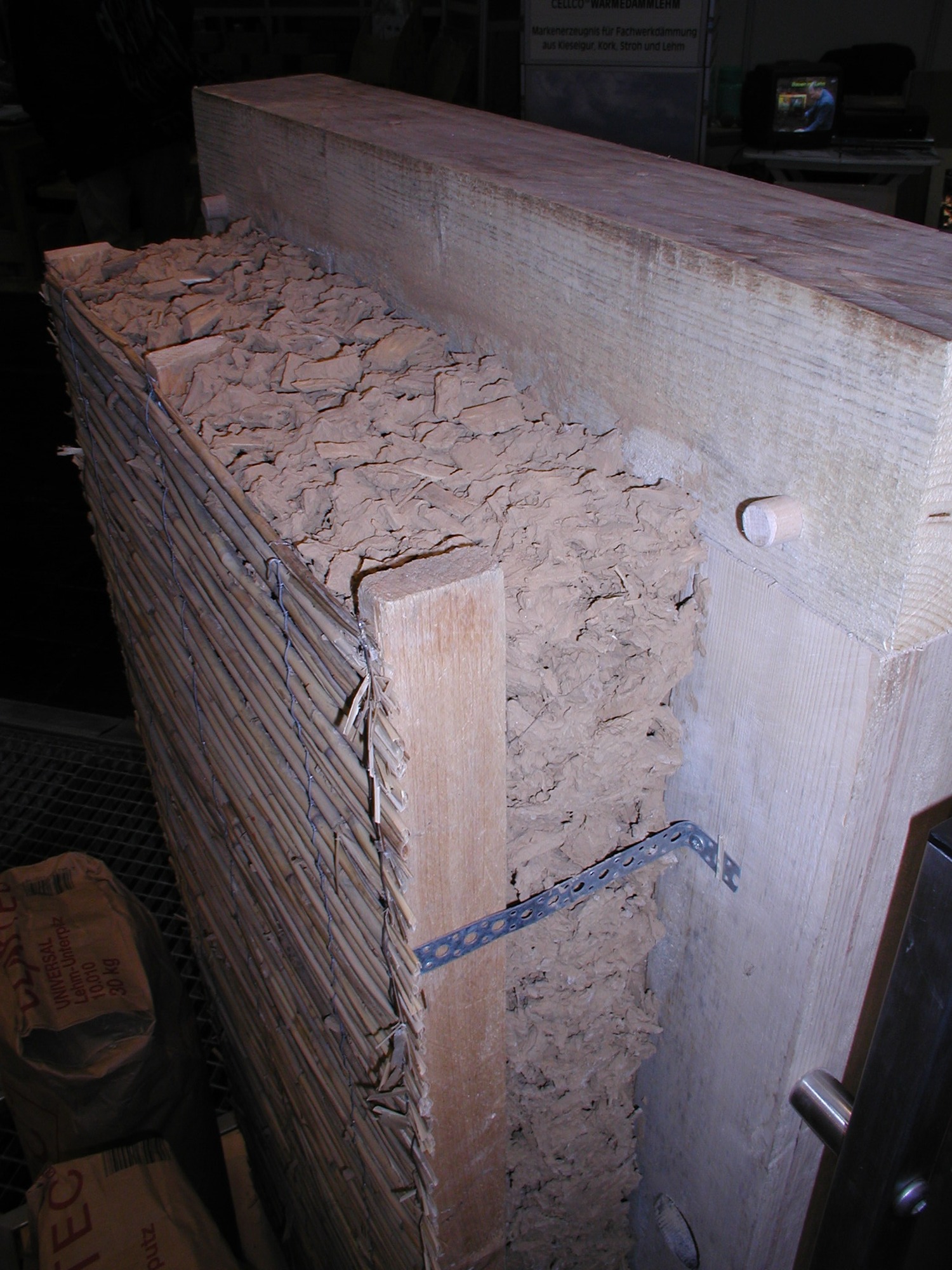 Obr. 4: Tradiční hliněná omítka nanesená na rohoži z rákosu (tzv. rákosová omítková rohož / rákosovina)
