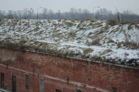 Obr. 2 a 3. Na ilustrácii vľavo je konštrukčná izolácia baziliky v Šaštíne založená na oddelení hlavnej stavby od podložia polozapusteným suterénom, čo už dnes spoľahlivo nefunguje. Na obrázku vpravo vidno rozdiel vo sfarbení muriva pod a nad ílovou izoláciou kazematov Starej pevnosti v Komárne, čo dokazuje, že táto izolácia tu funguje.