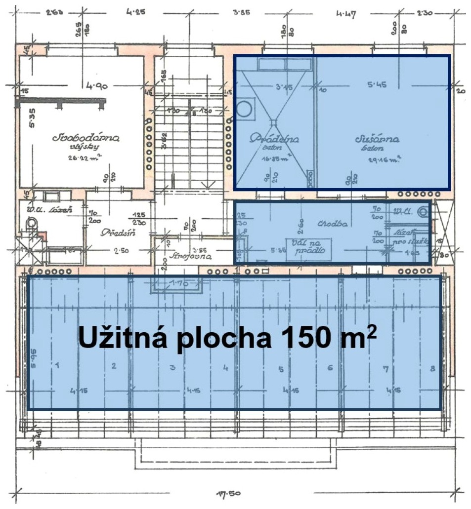 Obr. 4 – Využití prádelny a půdy pro zřízení dvou bytů (+150 m2)