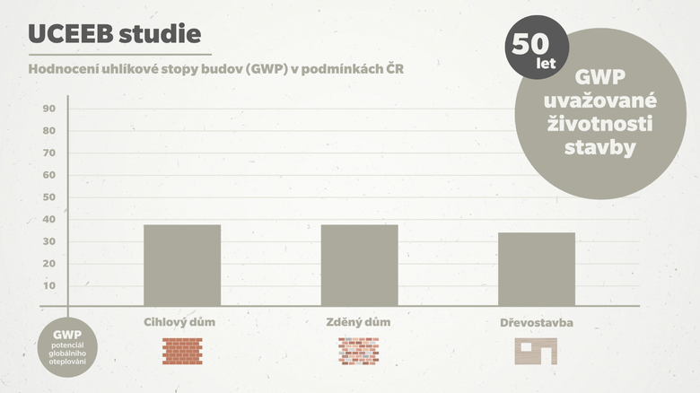 Výsledky nové studie Posouzení LCA projektu rodinného domu Zina Mikulčice1, kterou zpracovalo Univerzitní centrum energeticky efektivních budov ČVUT (UCEEB), však ukazují, že rozdíly v environmentálních dopadech při výrobě a provozu jsou mezi zkoumanými konstrukcemi, tedy pálenou cihlou, pórobetonovou tvárnicí a dřevěnou sendvičovou konstrukcí, minimální. Klíčovým faktorem udržitelnosti je podle studie především celková energetická náročnost, provoz budovy a životnost stavby.
