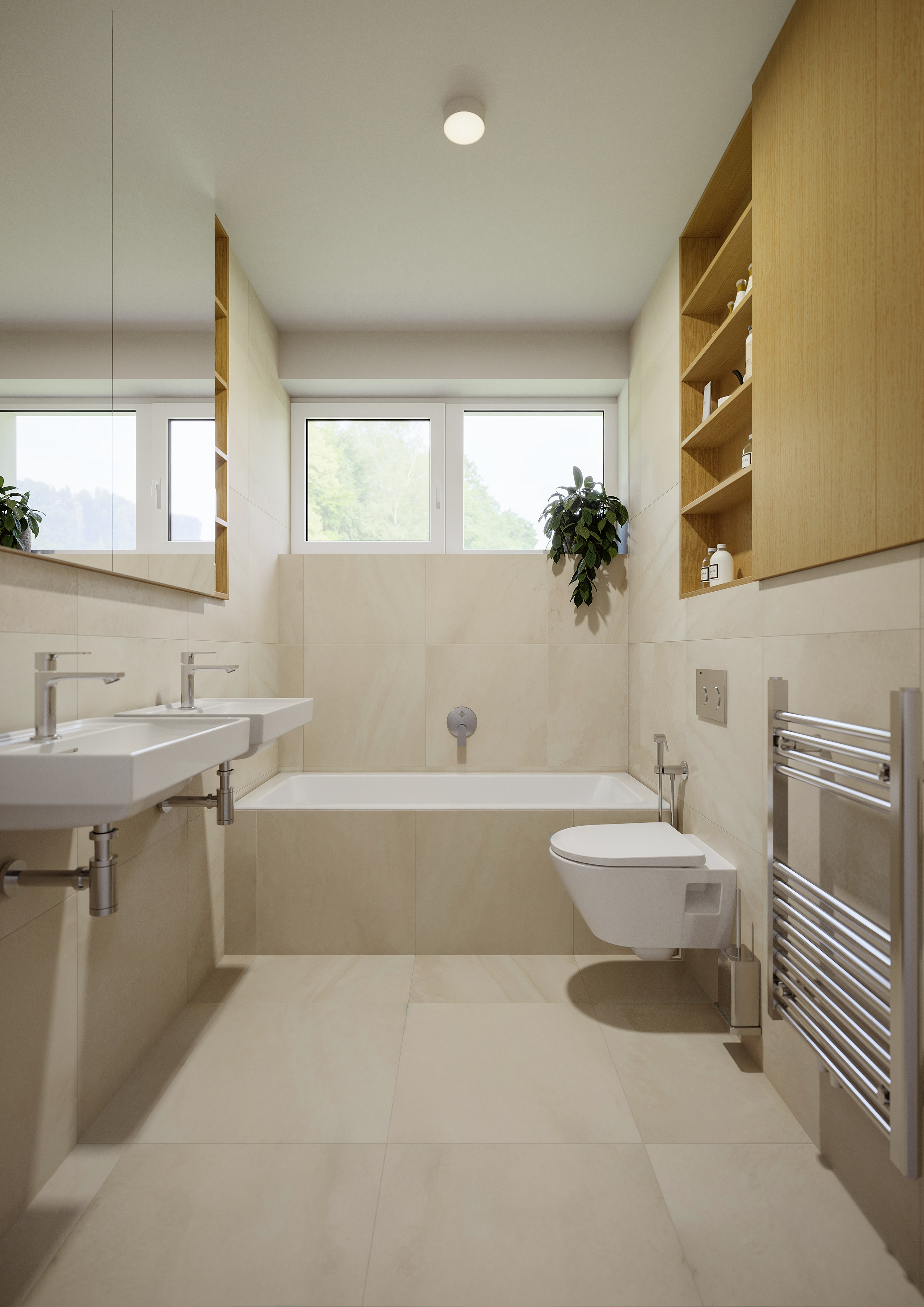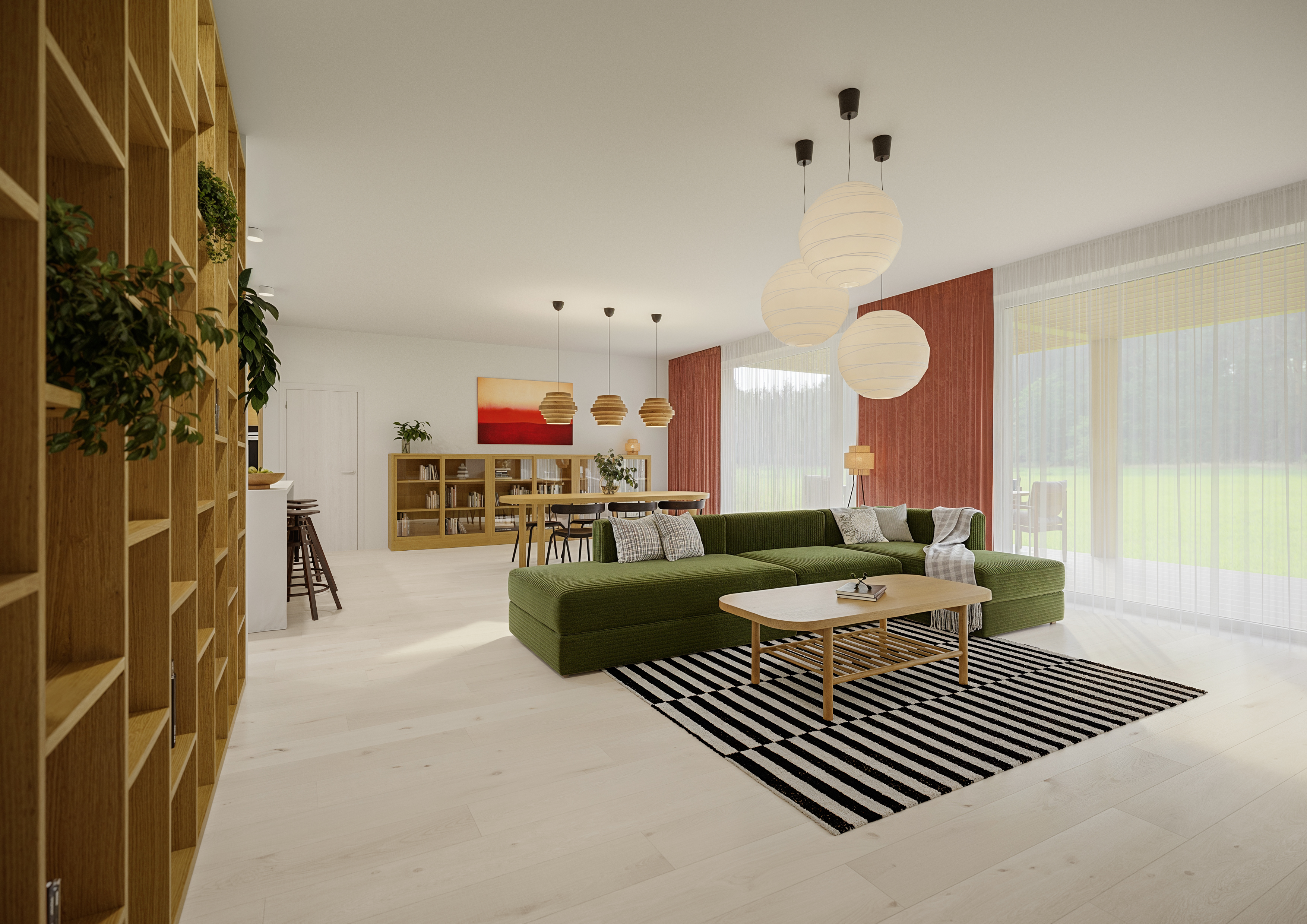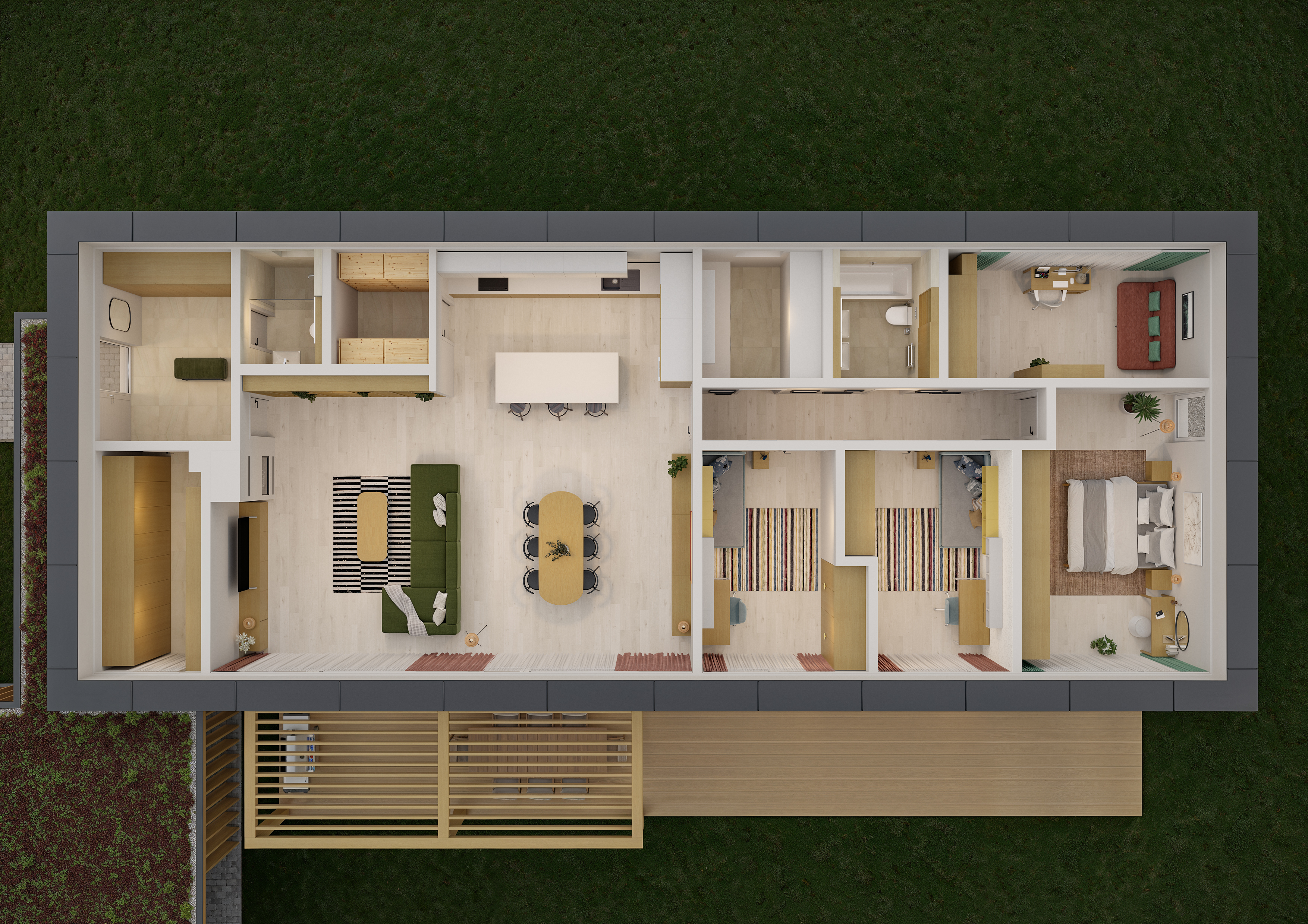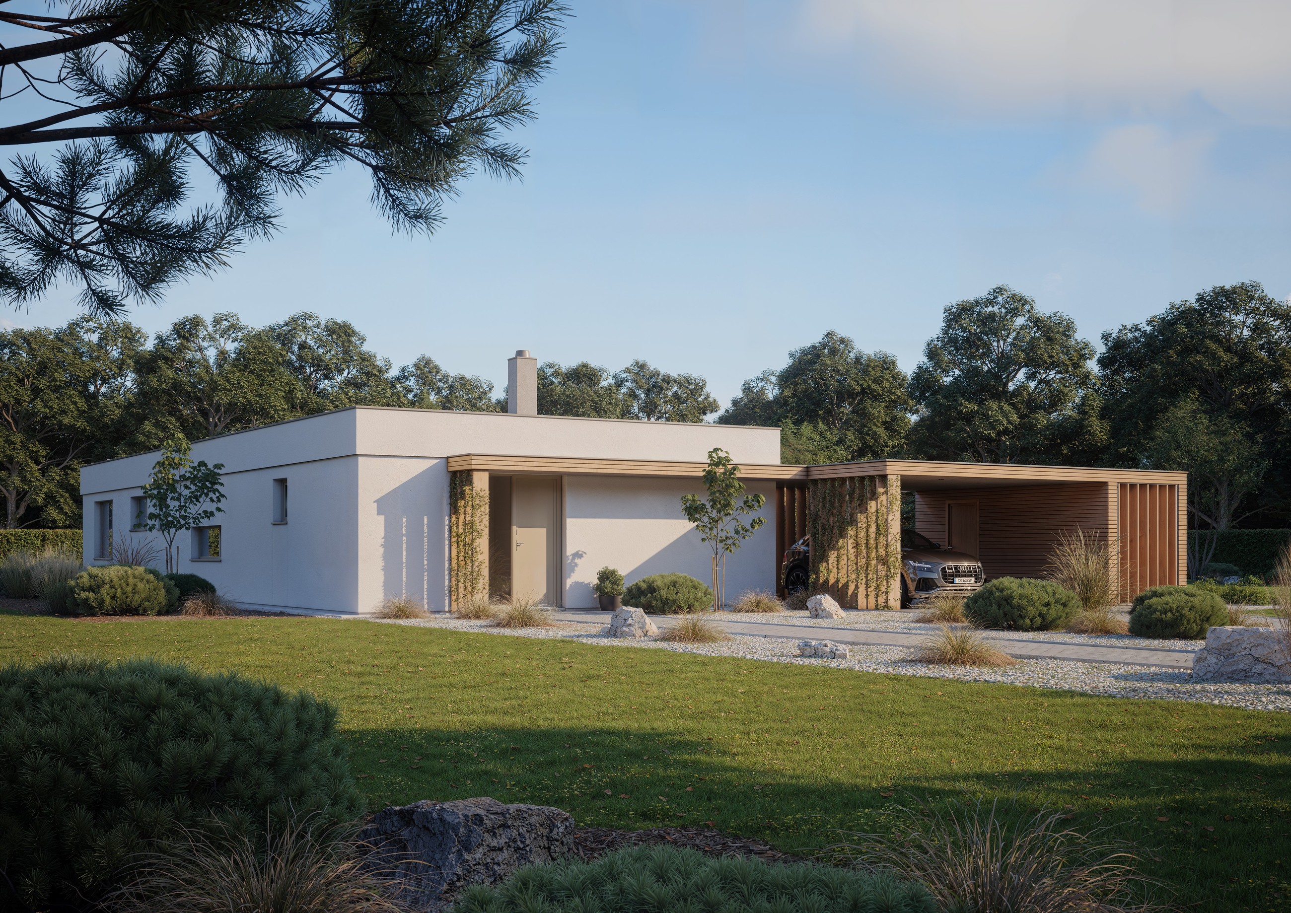 Navíc Element nabízí něco, co u bungalovů není běžné – masivní strop. Ten zajišťuje vyšší tepelnou akumulaci a lepší technické parametry. A co víc, umožňuje budoucí přístavbu patra nebo obytného podkroví.