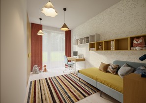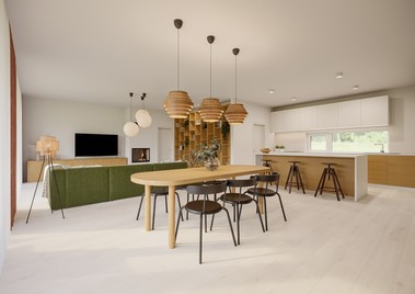 Z nabídky Smysluplných domů HELUZ zaujal Václava a Ivu hned v prvním okamžiku typ Element. „Zhmotnil naše představy. Chtěli jsme jednoduchý přízemní dům bez schodů. Element nás zaujal vzdušnou dispozicí a propojením interiéru se zahradou. Nejvíce se mi líbí kuchyně navazující na obývací pokoj s velkými okenními portály na zahradu,“ přibližuje Iva důvody výběru. Na terasu mají přístup i dva dětské pokoje a ložnice rodičů, propojení se zahradou je tak dokonalé, a především v letních měsících dodá domovu zcela nový rozměr. Kromě zmíněných pokojů se v Elementu nacházejí dvě koupelny a další obytná místnost, která může sloužit jako pracovna, pokoj hostů nebo třetí dětský pokoj.