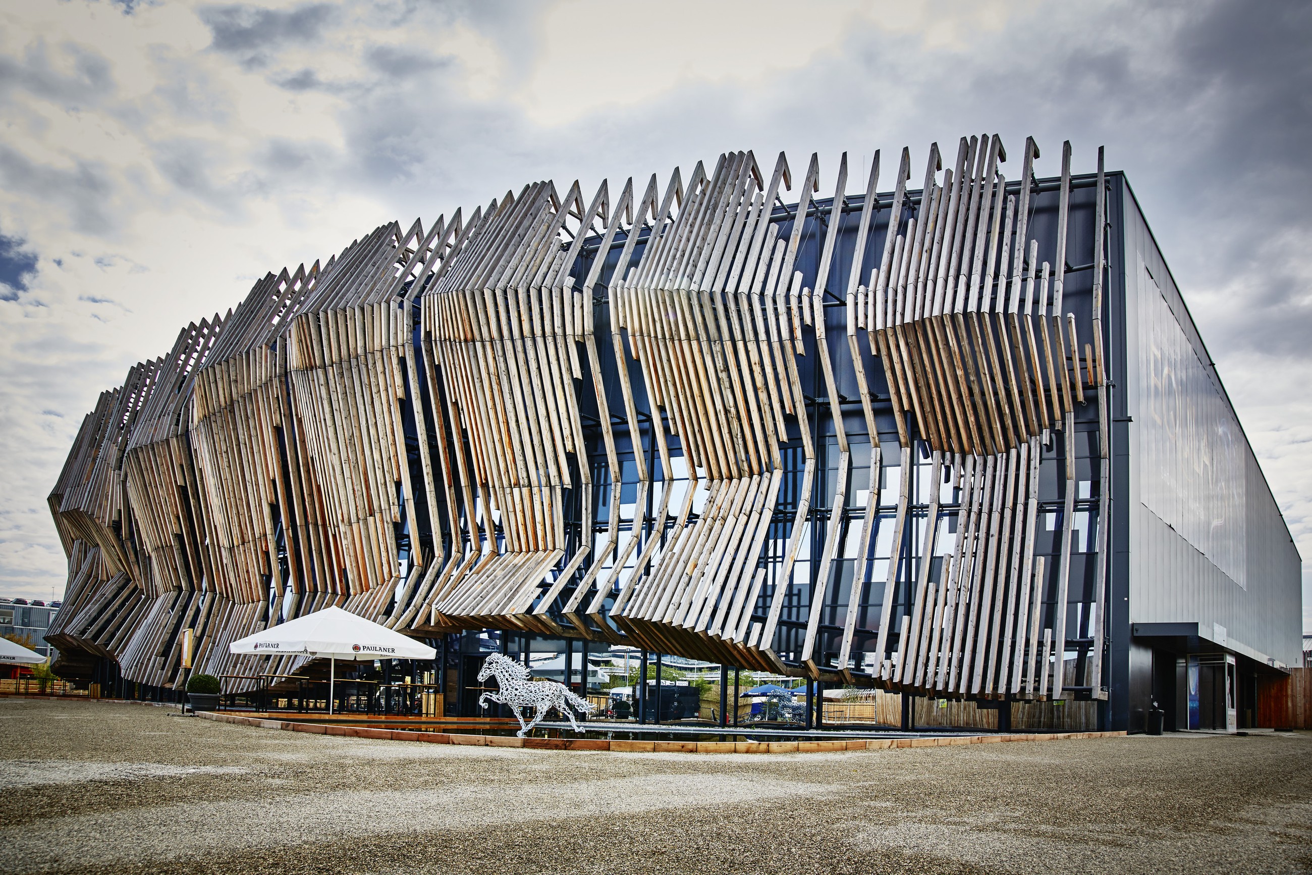 Hlavním prvkem komplexu je aréna Showpalast, jejíž přední část je obložena zvlněnou skládanou dřevěnou konstrukcí, která připomíná tryskajícího koně - zejména večer, když je celý prostor ozářen světelnou show.