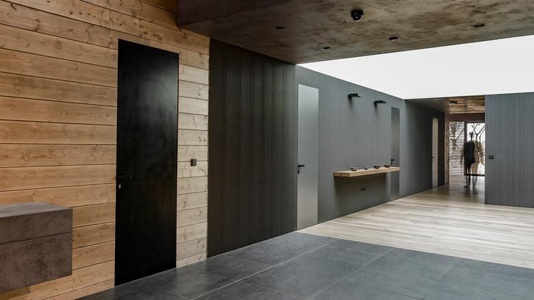 V moderních minimalistických interiérech se často pracuje s neutrálními tóny nebo návazností na stěny, aby dveře přirozeně splynuly s prostorem - dveřní křídlo je zde často nejen bílé, ale často třeba se stěrkou nebo tapetou. Ve spojení se skrytými zárubněmi je výsledkem moderní minimalistický interiér, kde dveřní křídlo splývá se stěnou.