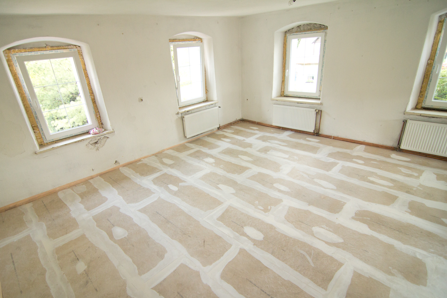 Hotová suchá podlaha s vytmelenými spárami připravená pro finální nášlapnou vrstvu