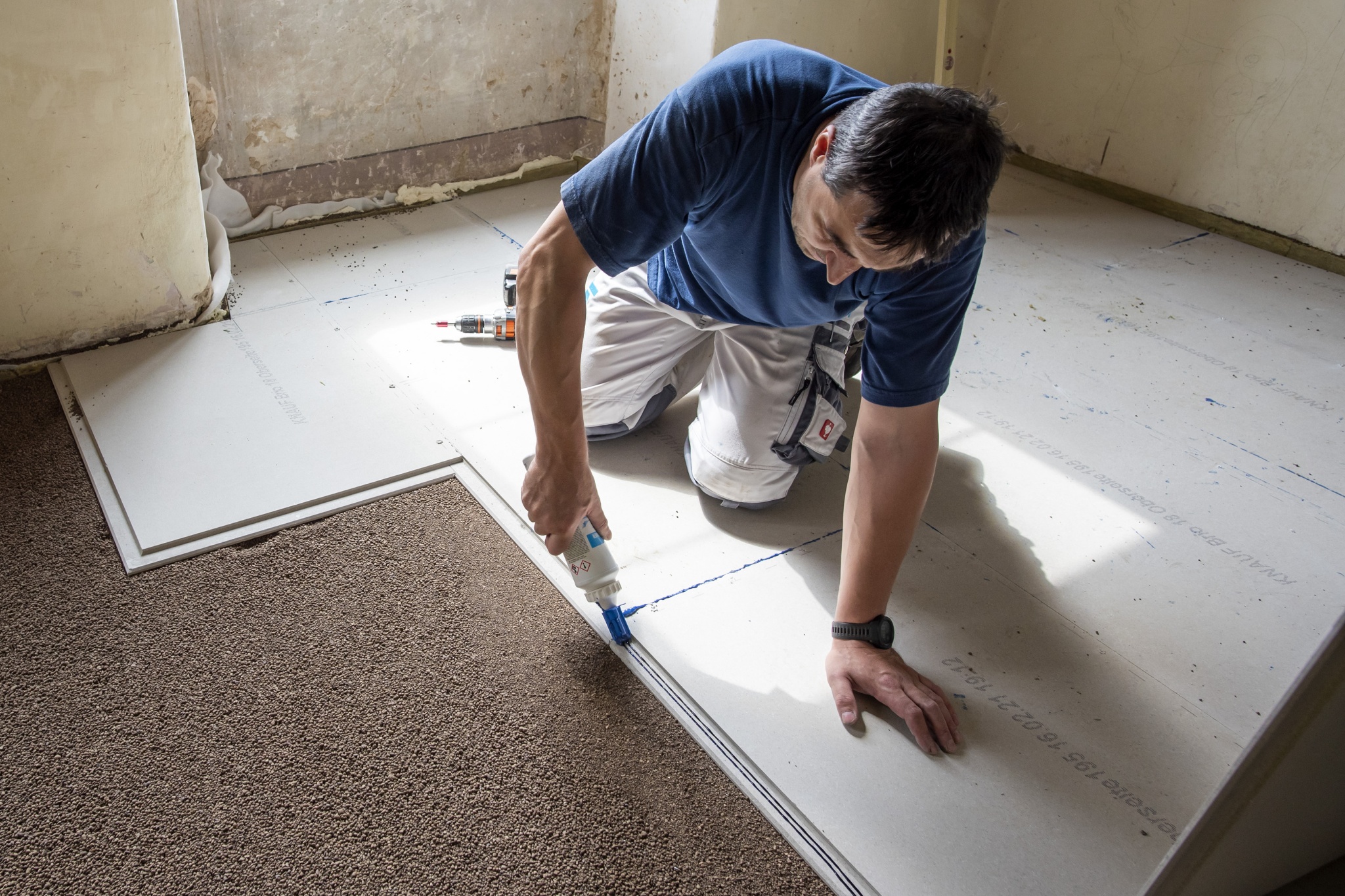 Proč je suchá výstavba tak výhodná a vhodná i pro neprofesionály? Zcela se vyhnete mokrým procesům. Nečekají vás žádné složité technologické úkony ani riziko nadměrného zatížení nosné konstrukce stavby. Nečekáte dlouhé dny nebo týdny, než podlaha vyzraje. Vlastně nečekáte vůbec na nic. Protože u suché plovoucí podlahy nejsou žádné technologické přestávky. Vše se řeší pomocí suchého vyrovnávacího podsypu a podlahových desek.