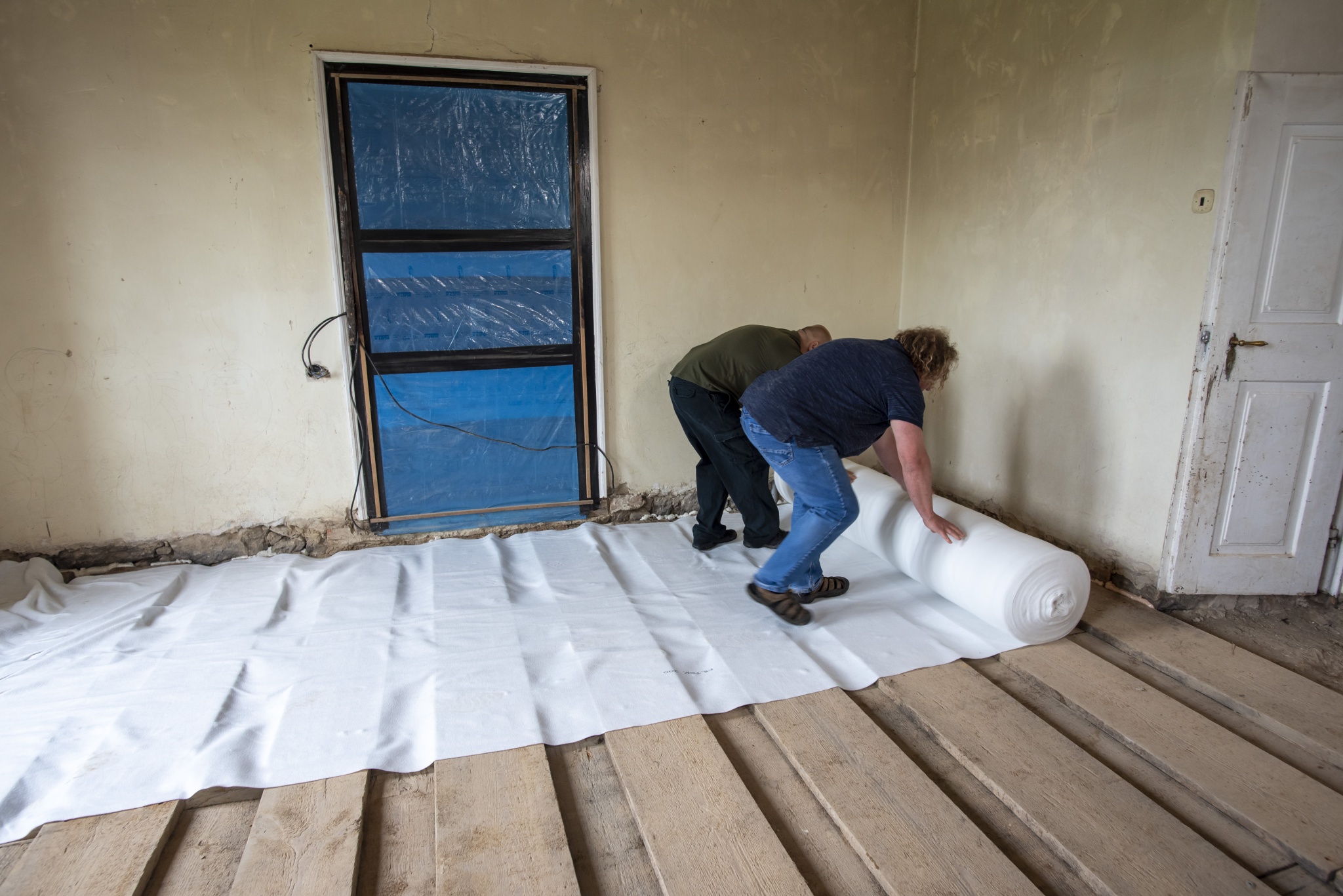 - Čištění a příprava podkladu: Odstraňte starou krytinu až na původní nosný základ a plochu důkladně vyčistěte. Zásadním krokem je položení separační vrstvy (to je důležité zejména u dřevěných stropů). Na celou podlahu natáhněte geotextilii a okraje vytáhněte mírně na stěny. Tím zajistíte, že drobné kuličky Liaporu nebudou propadávat do mezer v původní podlaze nebo stropní konstrukci.