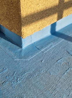 3. Rohy se izolují pomocí těsnicího pásu nebo těsnicích rohů. Hydroizolační vrstva musí být provedena tak, aby vytvořila těsný a souvislý ochranný obal, který pokračuje i vertikálně na stěnu.