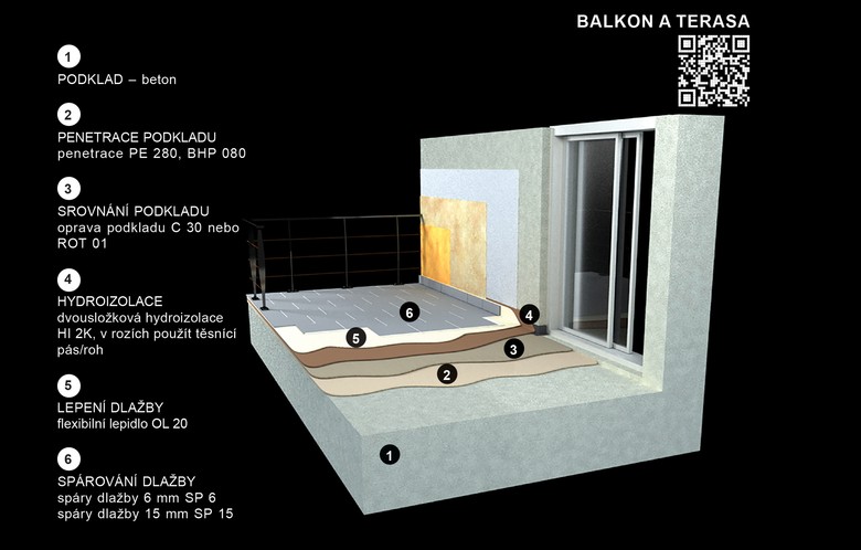 V portfoliu české značky BRALEP, specialisty na stavební chemii, najdete komplexní systémové řešení pro realizaci venkovních balkonů a teras. Systém zahrnuje osvědčené hydroizolační materiály a technologie pro spolehlivé lepení a spárování dlažby. Doporučená skladba zajišťuje vysokou technickou úroveň provedení, dlouhou životnost a vizuálně atraktivní výsledek, který odolá náročným podmínkám venkovního prostředí.