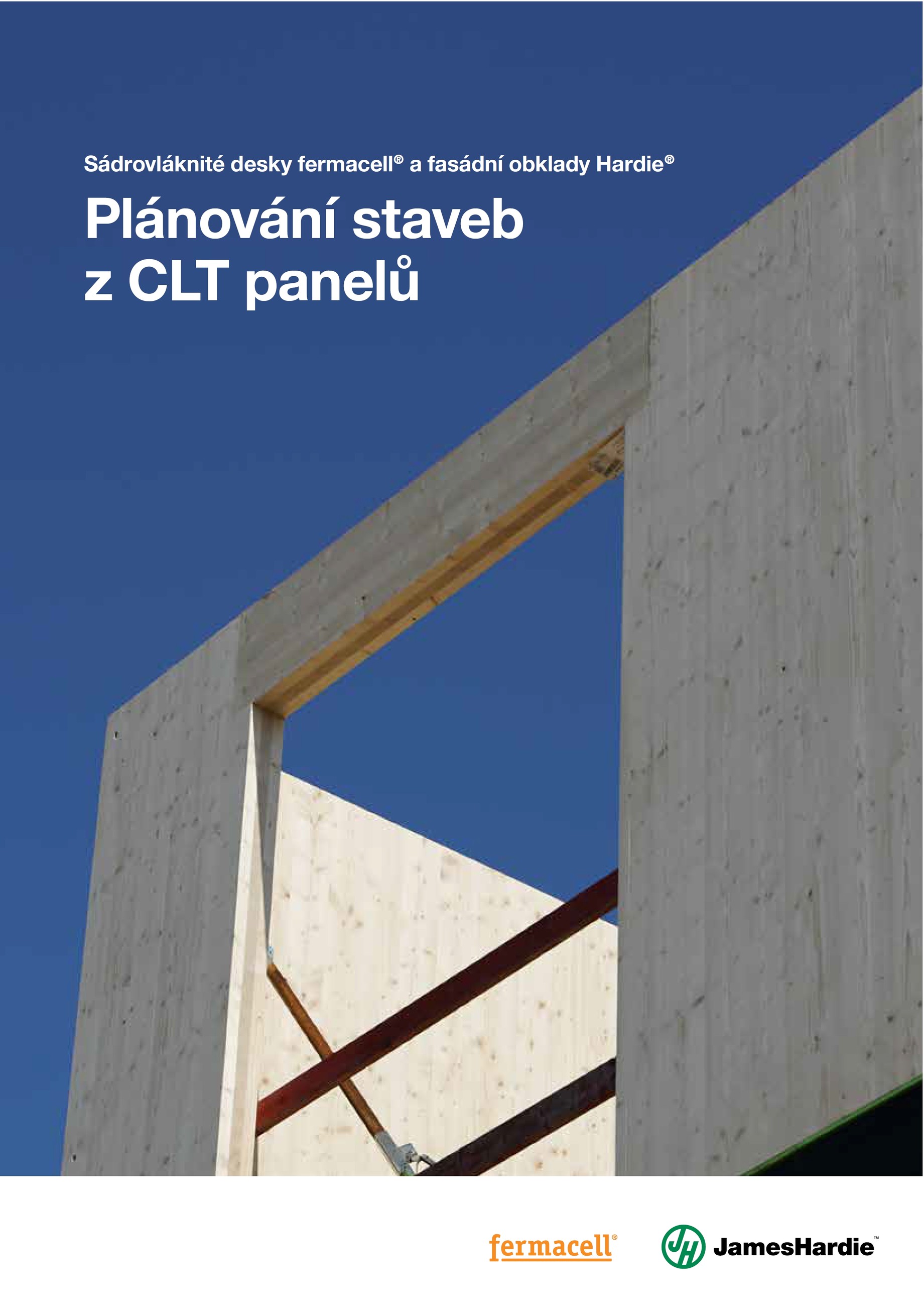 Titulní strana publikace Sádrovláknité desky fermacell® a fasádní obklady Hardie® – Plánování staveb z CLT panelů