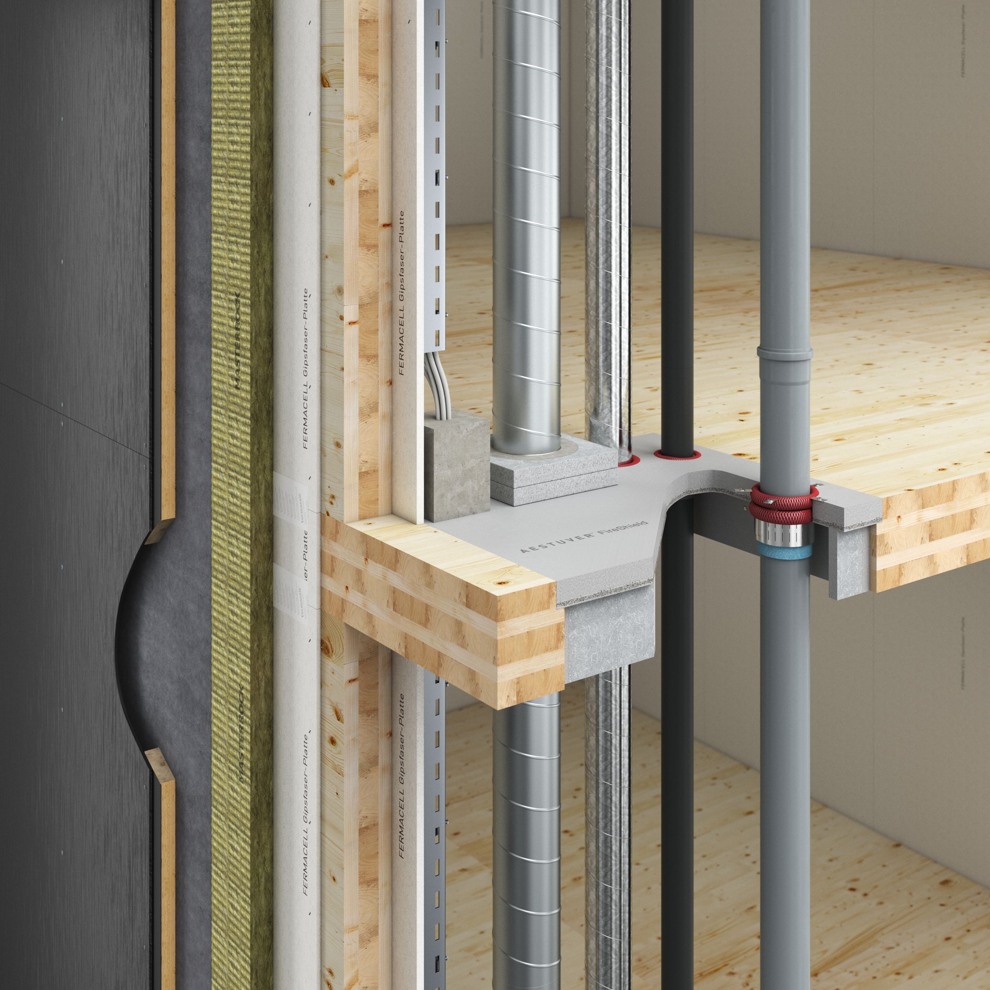 Aestuver™ FireShield – systémové řešení prostupu stropní konstrukcí z CLT panelů (projektové řešení)