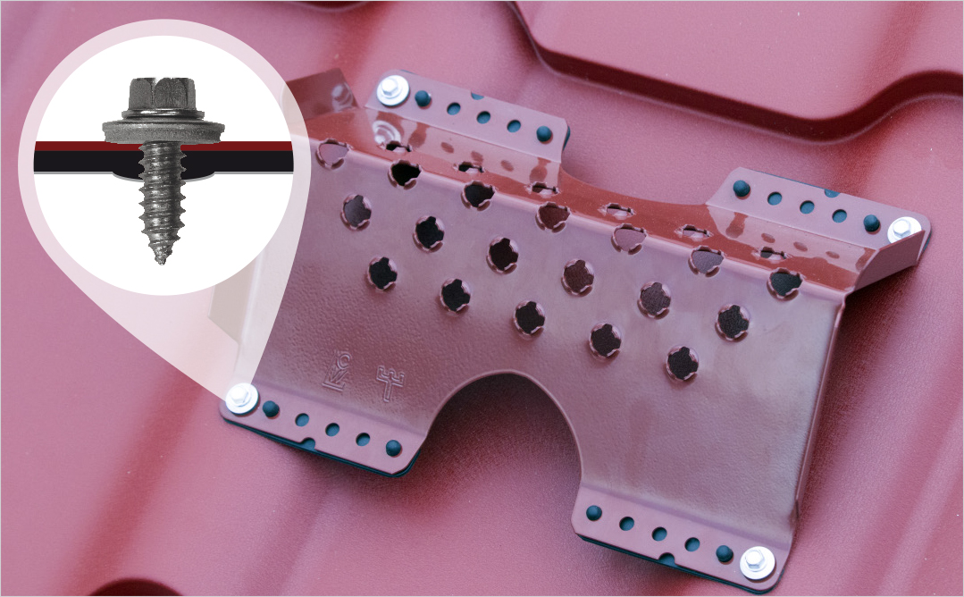 Potenciální riziko může skýtat i nevhodně vyřešená fotovoltaika. U té se většinou řeší hlavně výkon a návratnost investice, ale zapomíná se na bezpečnost střechy. Nešetrnou instalací panelů by se totiž mohla krytina poškodit a místo úspor by způsobily jen zbytečné výdaje. Pokud na plechové střeše vyjde ukotvení panelů nevhodně – třeba u boční části vlny krytiny, u oplechování nebo těsně kolem střešního okna, může být problém místo trvale utěsnit. „Pro naše plechové krytiny jsme proto vyvinuli systémové držáky SATJAM Solar, které se nekotví do podkladu, ale pomocí šroubů s těsněním přímo do krytiny. Upevňují se do horní vlny těch profilovaných nebo na tak zvanou stojatou drážku falcovaných krytin a krytiny Rapid (typ KLIK). Instalace je tedy snadná a zajistí bezpečné kotvení fotovoltaických panelů bez rizika poškození krytiny,“ popisuje Ing. Petr Tureček ze SATJAMu. Držáky SATJAM Solar získaly na veletrhu Střechy Praha 2023 čestné uznání v soutěži Zlatá taška.