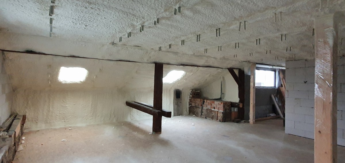 ANO. PUR pěna při aplikaci zvětšuje svůj objem a dokonale vyplní všechny mezery v konstrukci střechy. Vytváří souvislou, bezešvou izolační vrstvu, která eliminuje tepelné mosty.