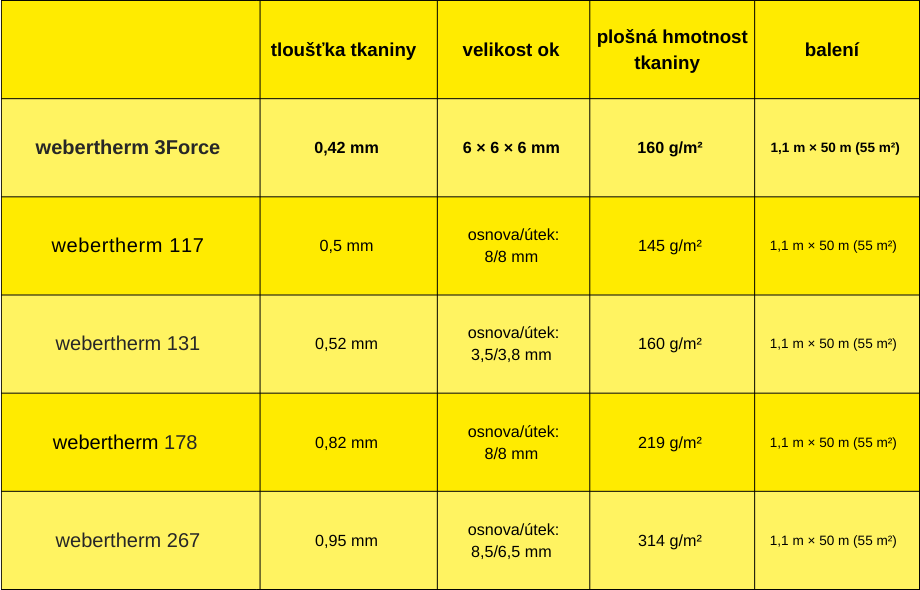 Výztužná tkanina zásadně ovlivňuje stabilitu a životnost ETICS. Weber proto uvedl novinku webertherm 3Force – první triaxiální skleněnou síťovinu na trhu. Díky uspořádání vláken ve třech směrech nabízí vyšší pevnost a účinnější ochranu proti vzniku trhlin než běžné dvouosé perlinky.