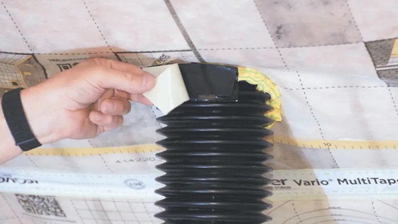 U potrubí je často problém dostat pásku do stavu, kdy rovnoměrně přiléhá po celém obvodu prostupu. Flexibilita Isover Vario® Stretch to výrazně ulehčuje.